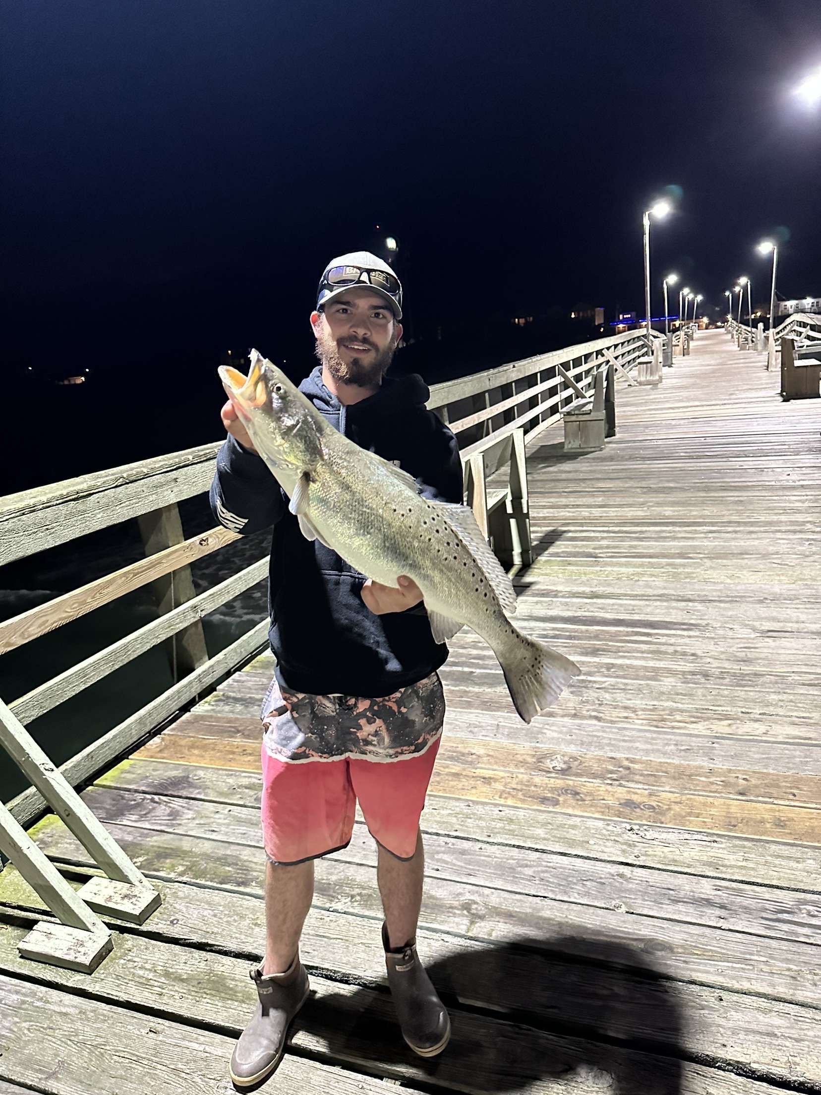 The Spanish are chewing!! After a slow day Saturday, the wind shift did the trick, and the Spanish lit it up yesterday, and are hitting hard again today. The crew on the end of the pier has seen quite a few king strikes this morning. Last night we had slot size drum and some spots and mullet. - Robin Orr